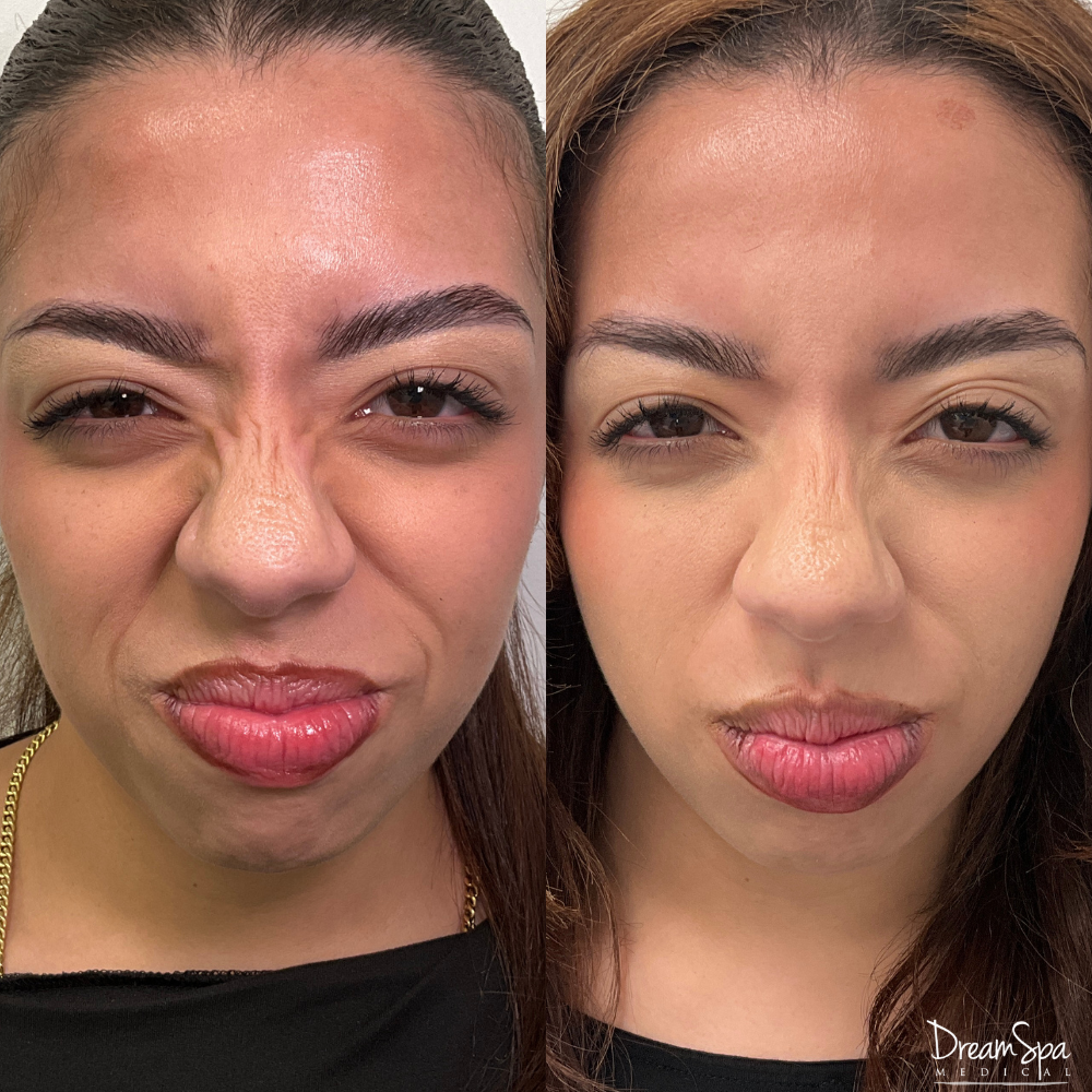 Bunny lines are the small diagonal wrinkles that appear on the sides of the nose when you scrunch or smile. Botox gently relaxes the overactive muscles in this area, softening those lines and creating
